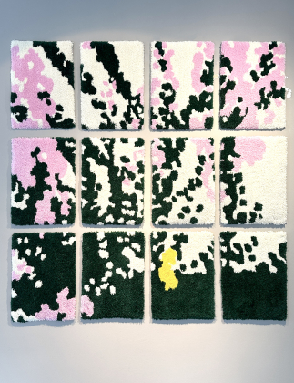 Durch die Verbindung von digitalem Design und handwerklichen Tufting-Techniken entstehen textile Arbeiten, die zugleich weich und konfrontativ sind. Onaiwus Werke halten flüchtige Momente fest, die sich zu einer vielschichtigen Erzählung verdichten und zur Auseinandersetzung mit der Komplexität gelebter Erfahrung einladen. Dabei eröffnet sie einen Dialog über Identität, Raum und die emotionale Bedeutung von Beziehungen als dynamische, sich stetig verändernde Gefüge.